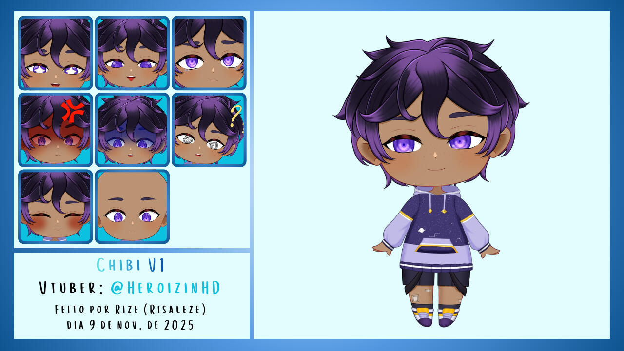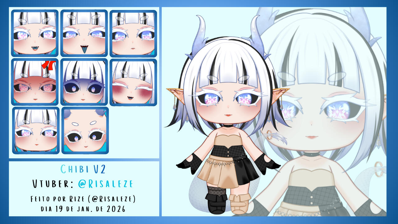 | Chibi 2D V3* | 3 expressões gratuitas. | Arte R$ 100 | Arte+Rigging R$200 |