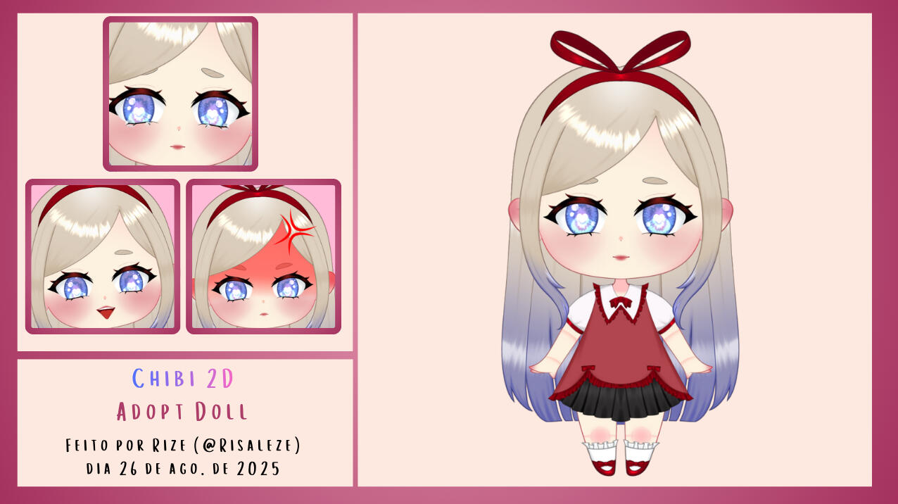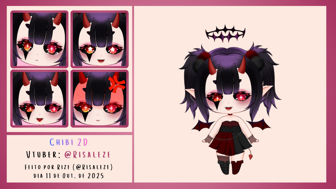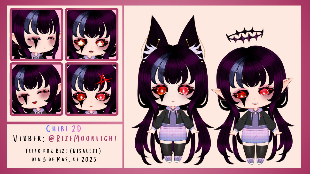 | Chibi 2D V2 | 3 expressões gratuitas. | Arte R$ 100 | Arte+Rigging R$200 |