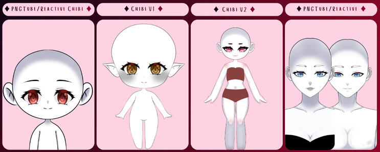 | PNGTuber Chibi | Contém 4 imagens* | Busto R$ 20 | Corpo inteiro R$30 |